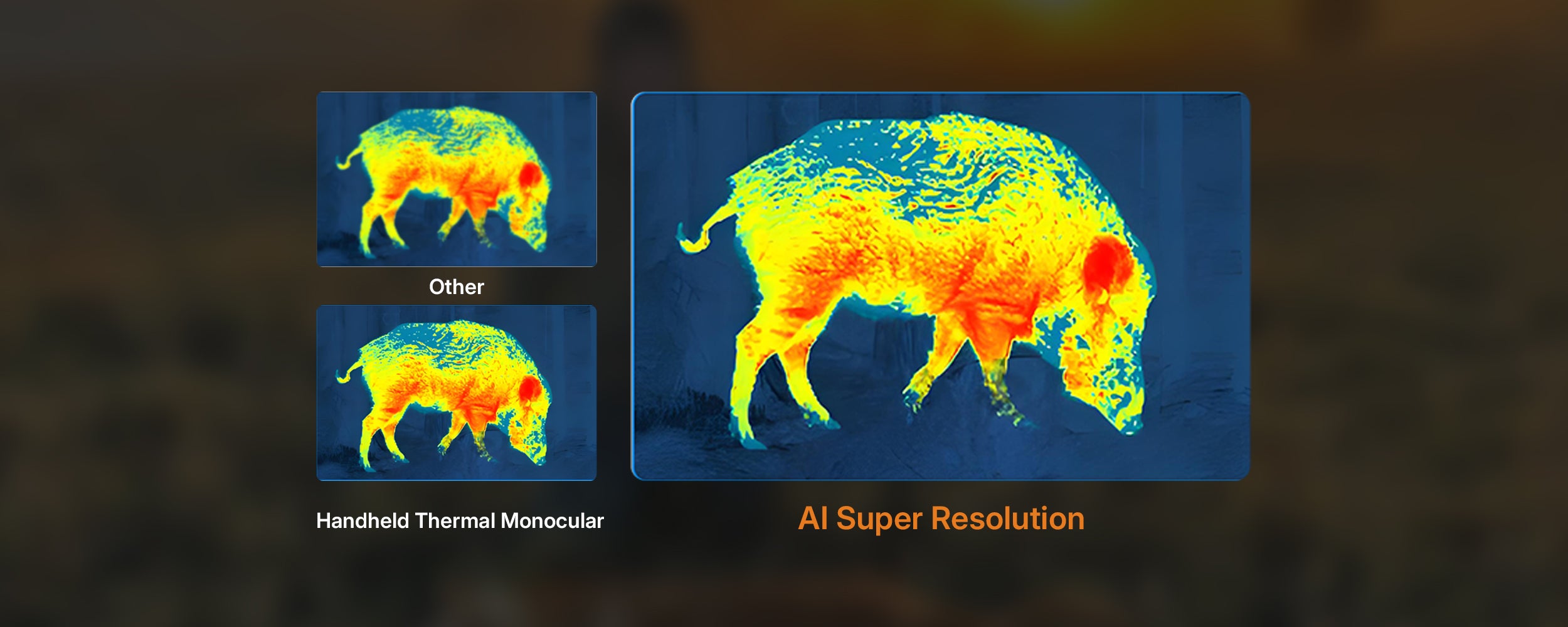 AI-enhanced 256×192 sensor — real-time AI Super-Resolution converts images to 320×240 for sharper on-screen detail.